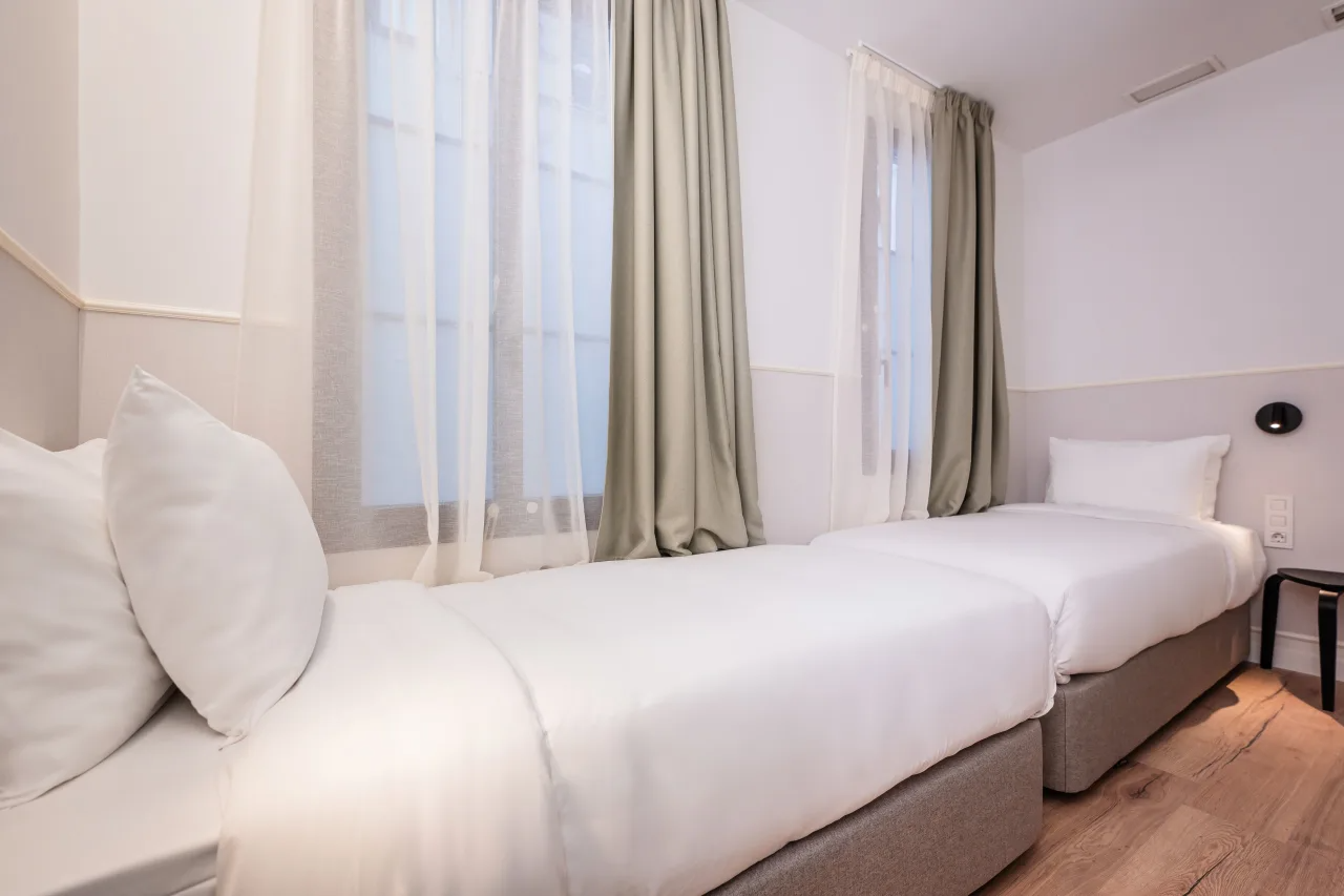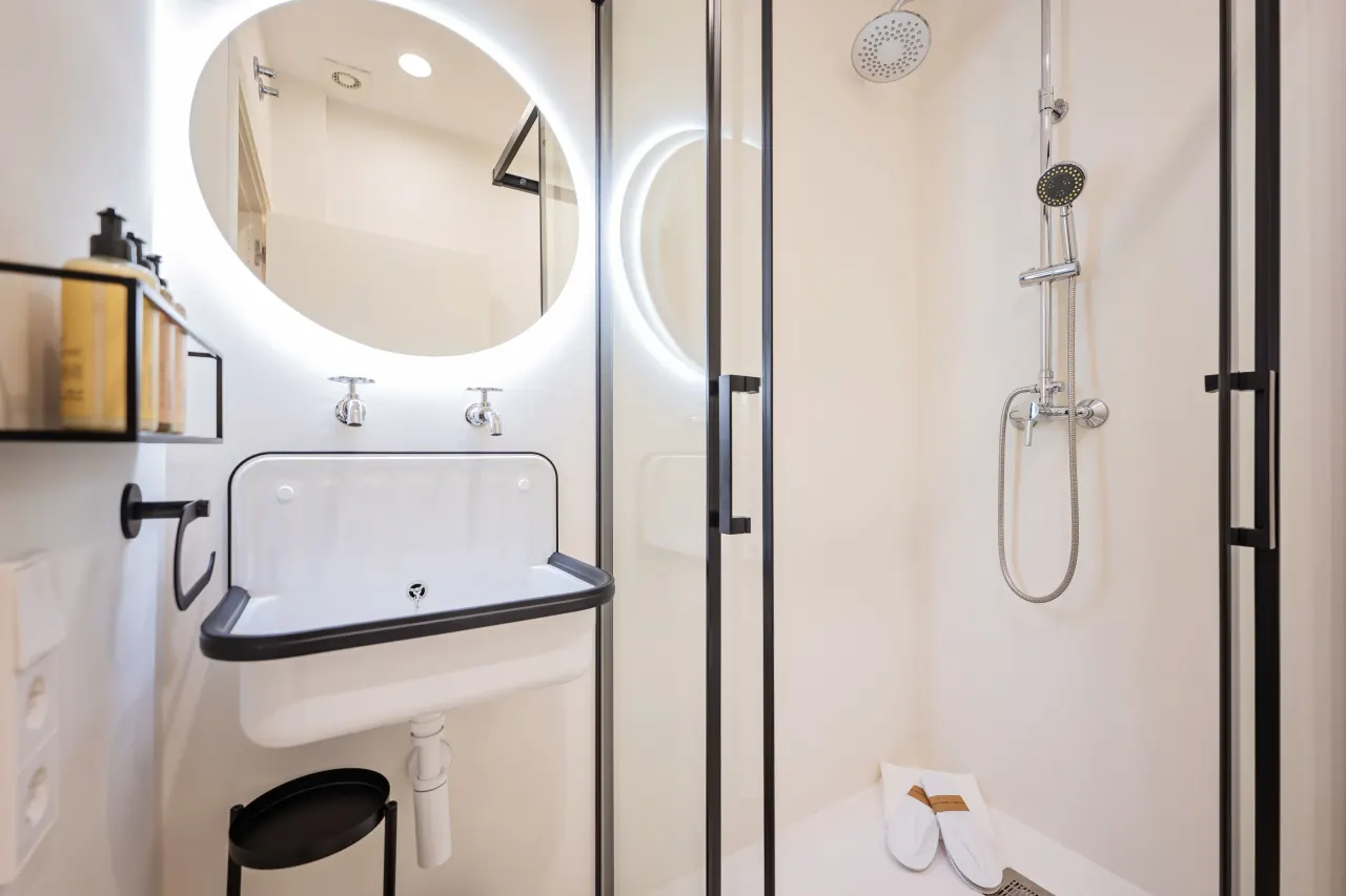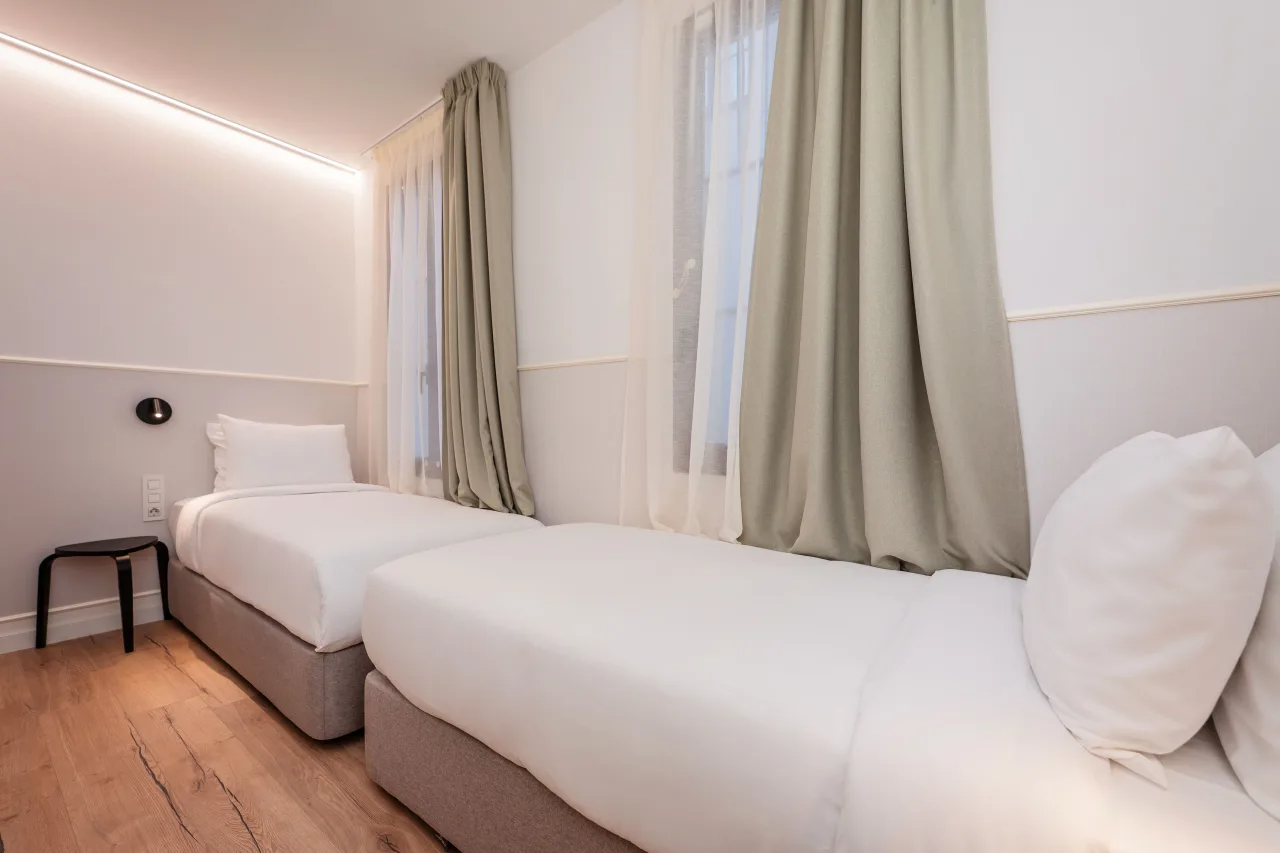 The Gran Via two-bedroom Acomodis apartment offers you the chance to experience the city like a true local. Recently redesigned by our talented local interior designer, this charming space will make you feel right at home. The decor and carefully chosen accessories beautifully capture the unique character of the area. The fully equipped kitchen is perfect for whipping up a quick snack after a day of exploring or honing your Spanish cooking skills.