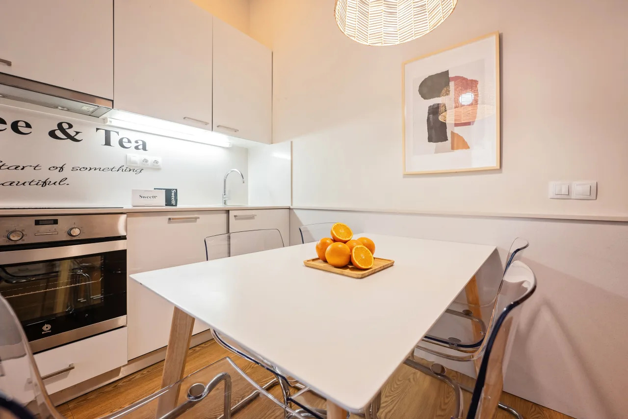 Ce charmant appartement de 2 chambres est baigné de lumière naturelle. Le mobilier confortable et le beau mélange de couleurs offrent au lieu un esprit accueillant et relaxant.