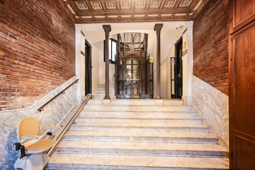 While the building features an elevator, please note that there are six steps to climb before reaching it.