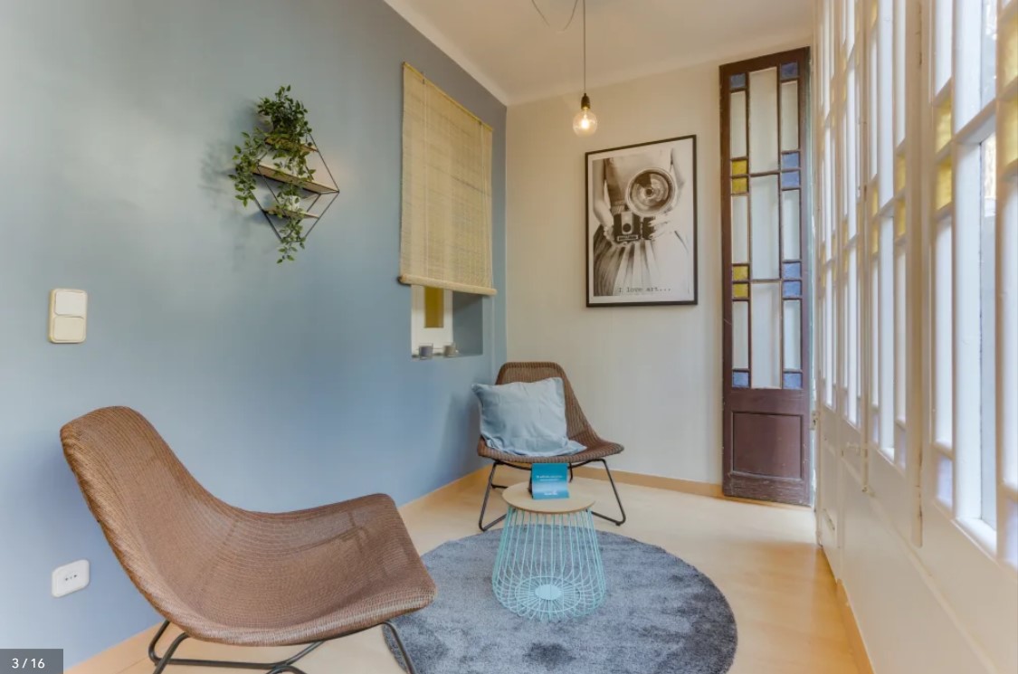 Inspirés par le soleil espagnol, nos architectes d'intérieur locaux ont soigneusement choisi un mélange de mobilier contemporain et d'art moderne pour mettre en valeur les carreaux classiques et les couleurs vives de cet espace chic et bohème. Une grande terrasse extérieure est un endroit idéal pour savourer votre expresso du matin. Les hauts plafonds confèrent à l'appartement une ambiance très spacieuse et vous adorerez cuisiner un repas espagnol épicé dans la cuisine moderne entièrement équipée.