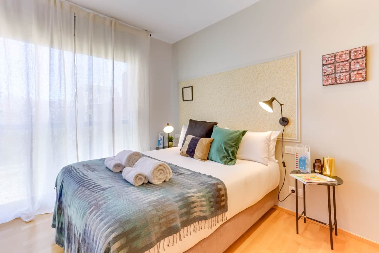 Designed by our expert local interior designer, this apartment beautifully combines classic Spanish style with modern, sleek surfaces. Prepare delicious Spanish tapas in the state-of-the-art kitchen, then savor a glass of wine in front of the picture window or on the charming terrace. Each of the two bedrooms features a luxurious double bed, making the apartment ideal for friends or couples.