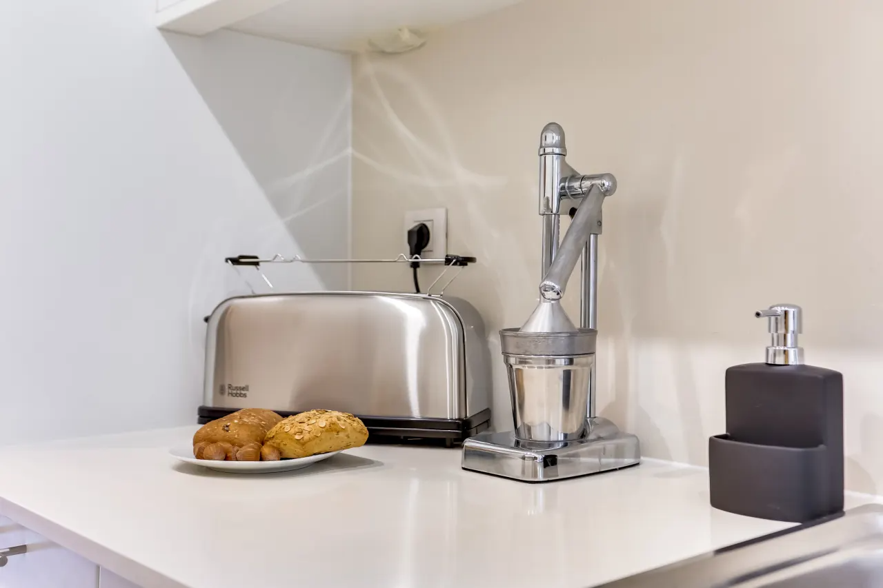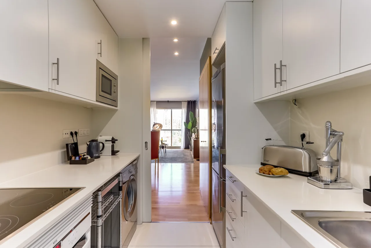 Premium amenities include cable TV, complimentary WiFi, hotel-quality beds and linens, high-end toiletries, and a Nespresso machine. Perfect for creative souls and adventurous spirits, this vacation apartment immerses you in the art and magic of Barcelona.