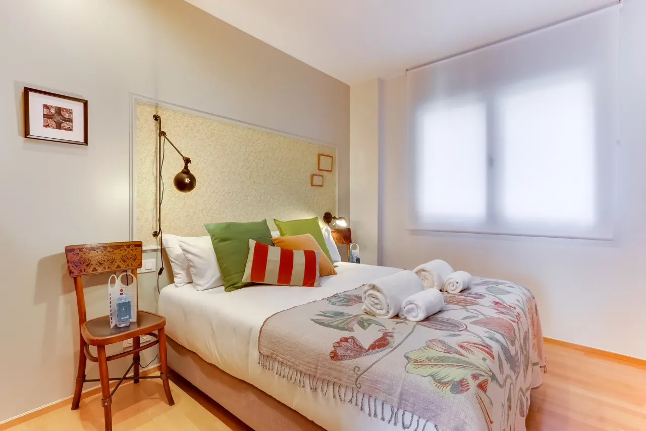 This two-bedroom vacation apartment located in the bohemian Sant Antoni-Eixample district, captures the vibrant essence of Barcelona. This area is a hub for artists, food enthusiasts, and young professionals, and its whimsical charm is sure to captivate you. Unleash your creativity at the Museum of Contemporary Art, just a 20-minute walk away, or stroll through the numerous parks and sculpture gardens right outside your door. The Rocafort metro station is conveniently close, just a 4-minute walk.