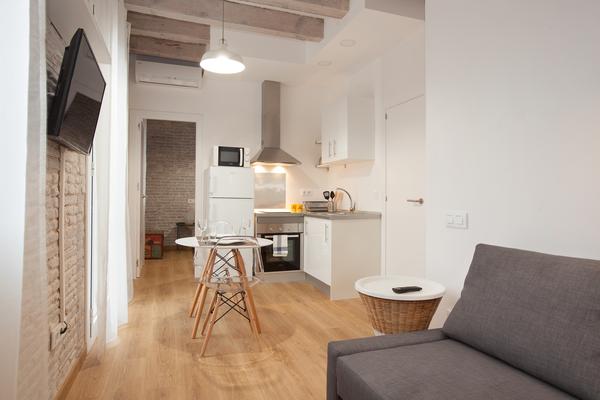 Do you love the sea? If you answer yes, this is the place for you. Located very close to the beach and surrounded by restaurants offering countless seafood options. Thirty five square meters equipped to host couples, solitary travellers or small families visiting Barcelona for several months, the minimum stay is 32 nights. Do it, book this space which will guarantee your comfort during your long trip!