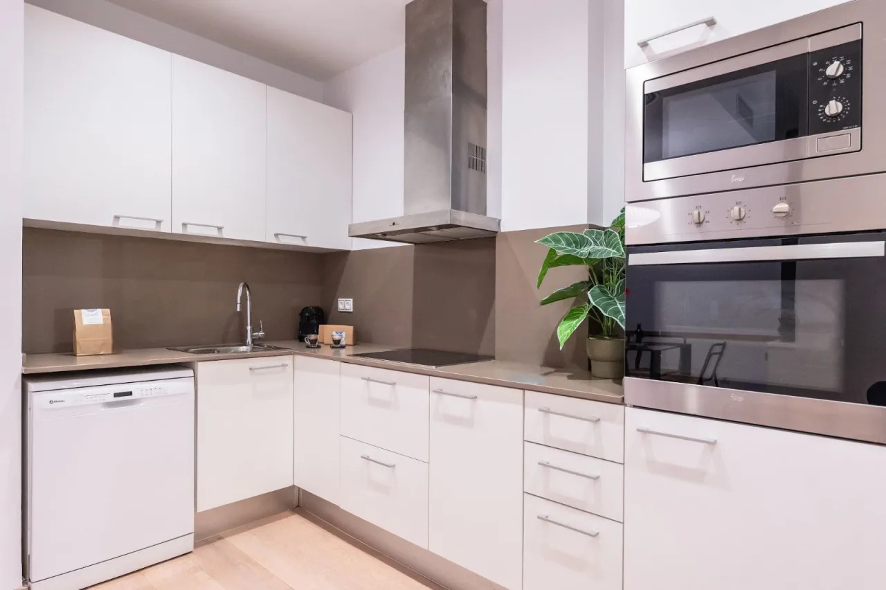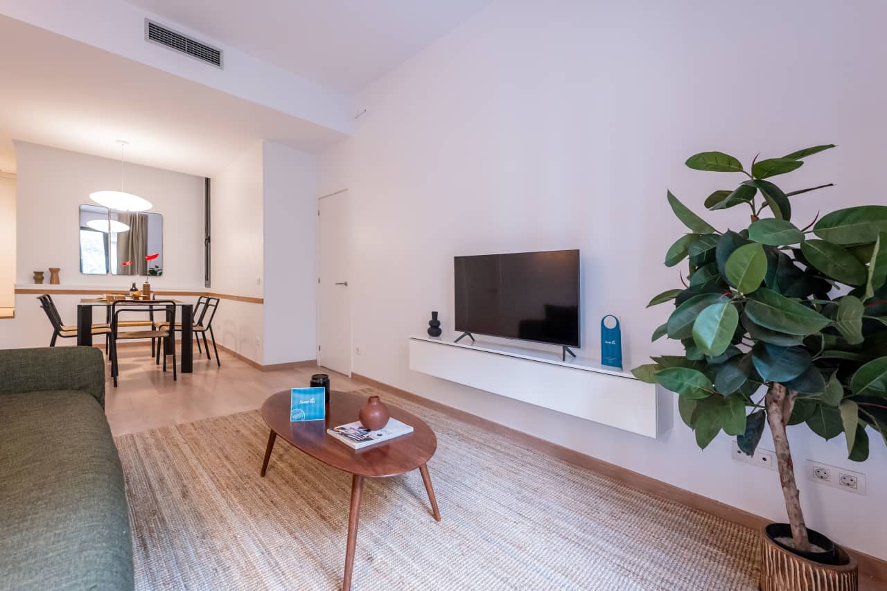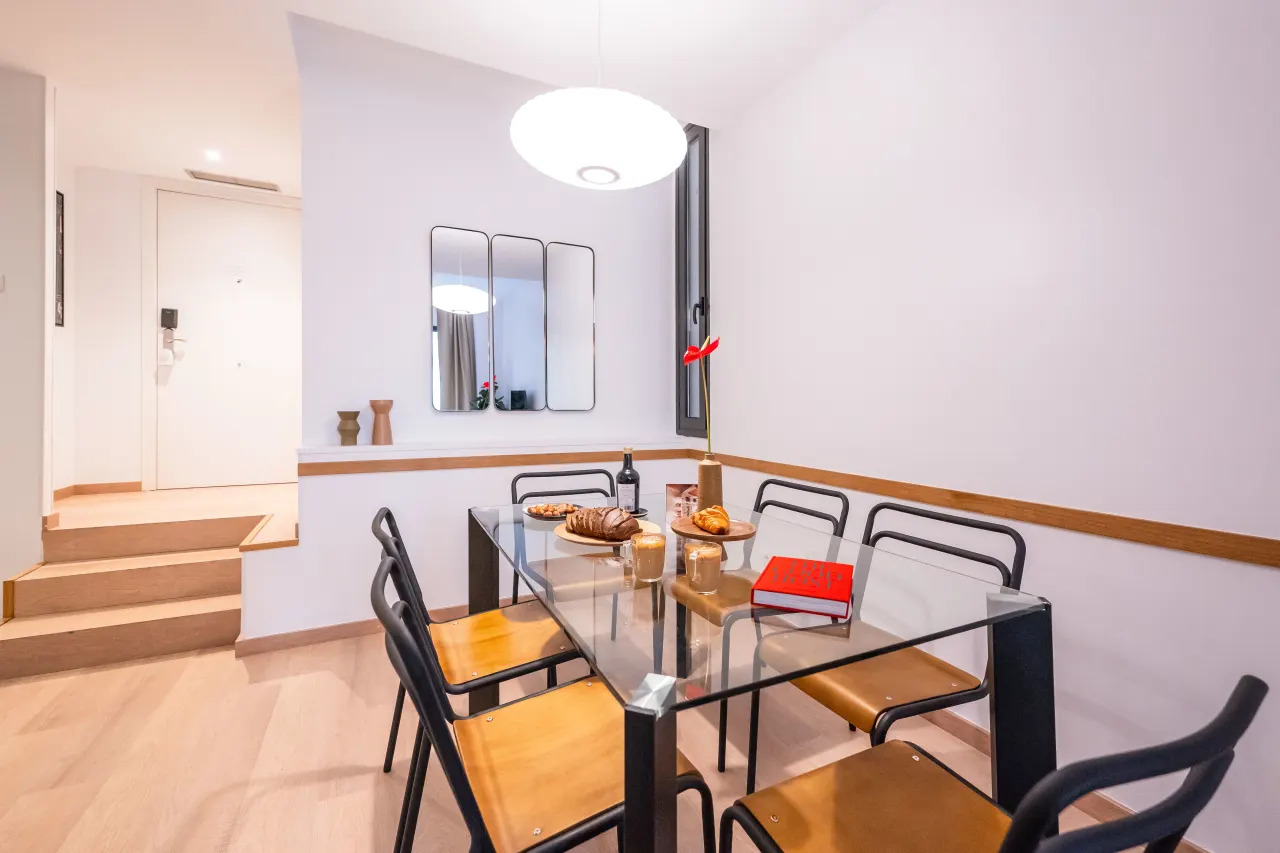 Beliggende i det livlige Eixample-området, er det et ideelt sted å fordype seg i Barcelonas lokale kultur. Bygningen har en rekke leilighetsalternativer, fra ett-roms til tre-roms enheter, alle fylt med rikelig med naturlig lys. De koselige møblene og den sjarmerende fargepaletten skaper en varm og innbydende atmosfære. Enten du foretrekker å tilberede en spansk rett på ditt eget kjøkken eller spise på en av de mange restaurantene i nærheten, vil du garantert ha et herlig opphold.