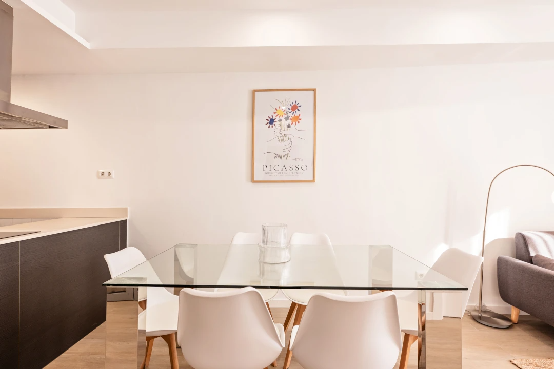 Make yourself at home in the heart of Barcelona with this stylish and modern three-bedroom apartment. Thoughtfully designed with a bright, contemporary flair, it offers the perfect balance of comfort and elegance. Soft, soothing colors and cozy furnishings create a relaxing retreat after a day of exploring the city.